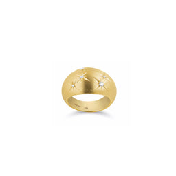 Asprey Cosmic Shooting Stars Ring is crafted in 18-carat yellow gold and inspired by the celestial theme of the Cosmic Collection. The bombe style ring features engraved star motifs set with brilliant diamonds, creating a constellation of light across the band.With its textured gold finish and refined silhouette, this piece bridges timeless elegance with cosmic wonder.