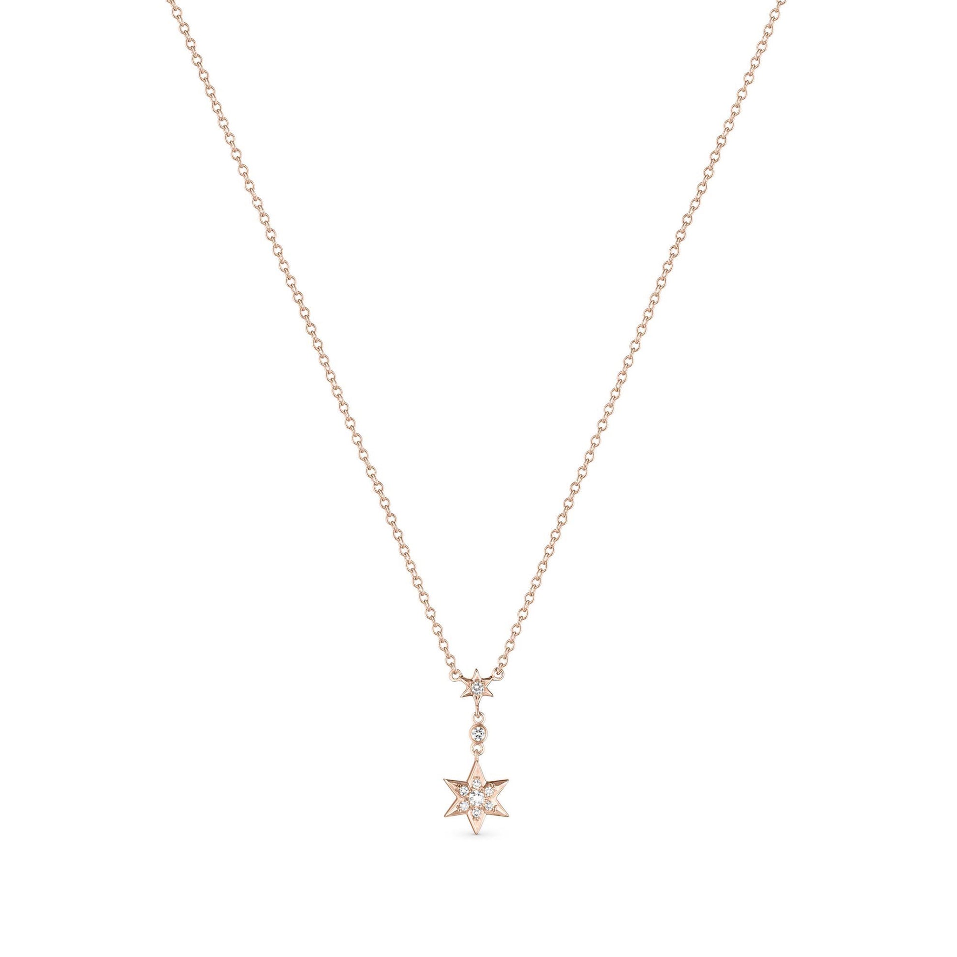 The Cosmic Stargazer pendant features a double star drop, echoing the celestial beauty of stars in space. Illuminated by diamonds and crafted in 18ct rose gold, it is finished with Asprey’s signature ‘A’ clasp and charm.