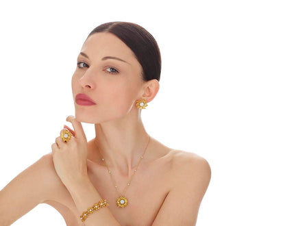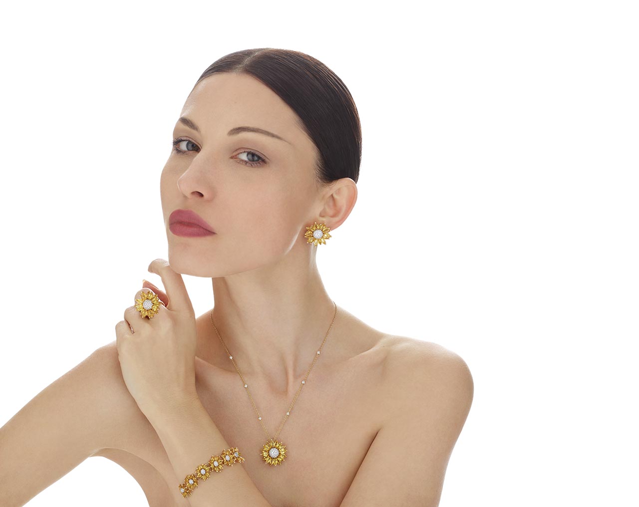 Like a blossoming English flower, this Daisy necklace evokes sun-kissed days surrounded by nature. It’s hand-cast in 18ct gold with 0.97ct of white diamonds dancing around the chain and clustered in the centre of the flower. Each dainty petal holds a vibrant yellow sapphire, with a collective total of 7.22ct, harmonising beautifully with the precious metal. Complete the full Daisy set with Asprey's coordinating jewellery.