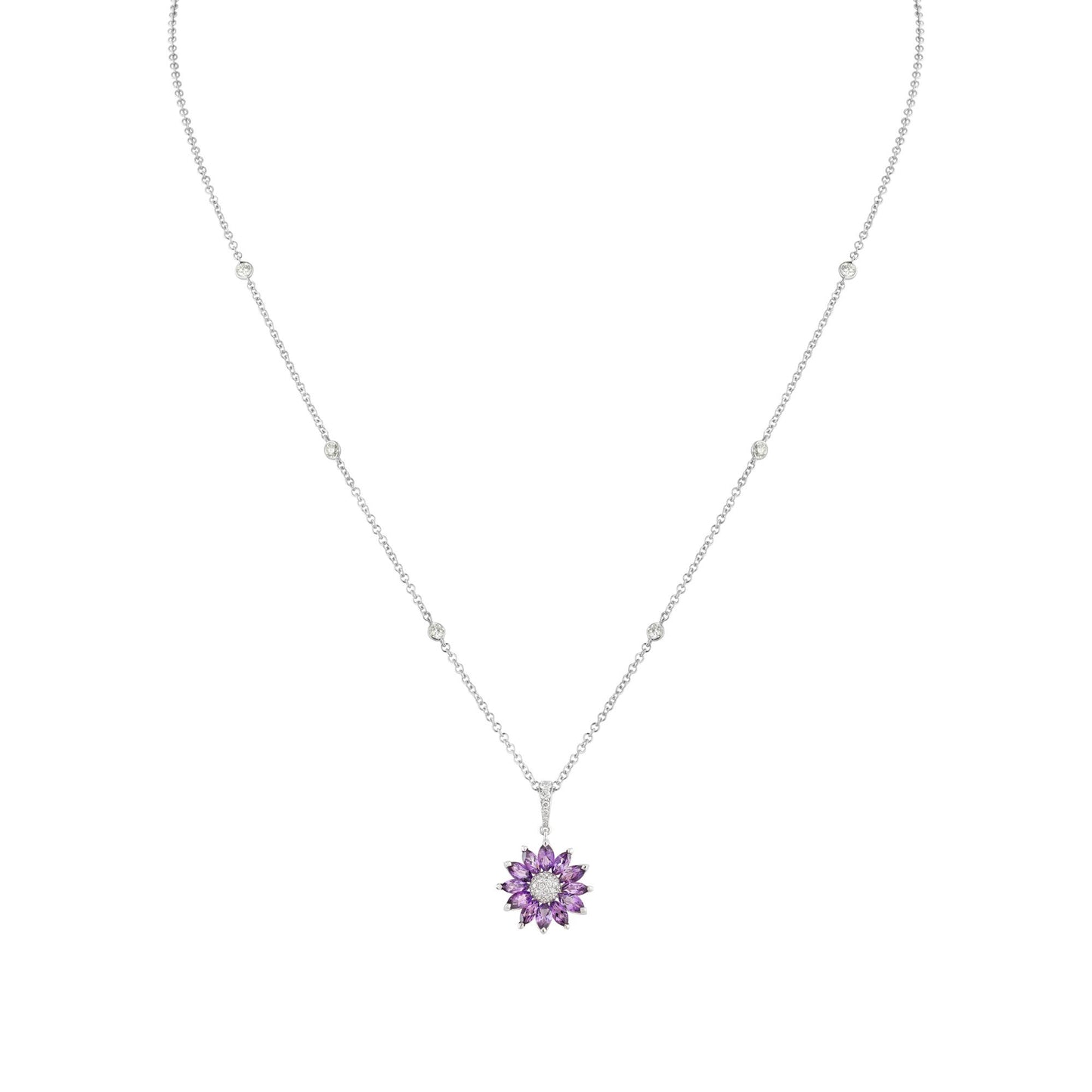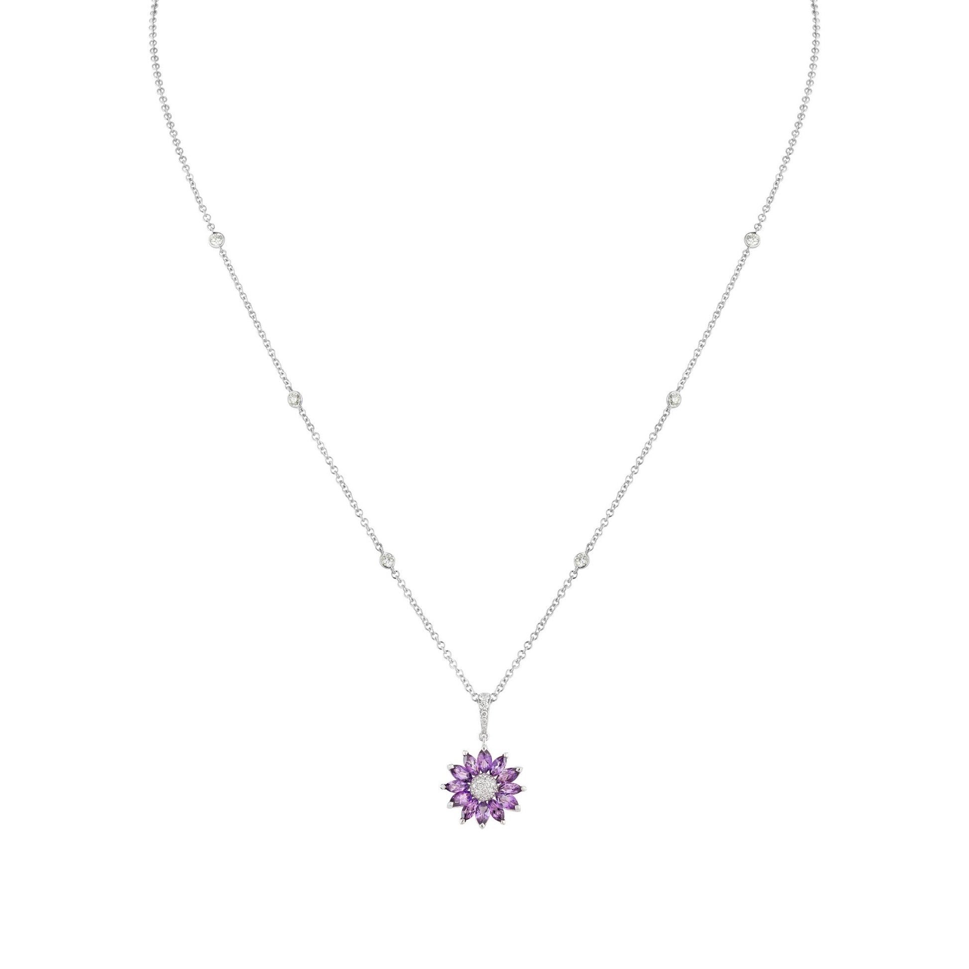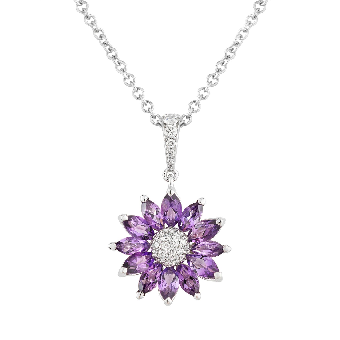 Asprey’s jewellery pays homage to the natural world and this Daisy necklace is a radiant tribute to the beauty found in every petal. It’s hand-cast in 18ct white gold with pavé-set diamonds peppered down the chain and in the heart of the flower, then framed with marquise-cut amethyst petals. Pair it with coordinating jewellery from the namesake collection.