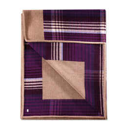 In a tartan weave in rich aubergine colour, this throw brings an air of regal sophistication to any space. The double-faced design offers versatility, with a complementary shade on the other side. The traditional check pattern, paired with a solid colour border, exudes timeless elegance, accentuated by a classic blanket stitched edge, showcasing the exceptional attention to detail.
