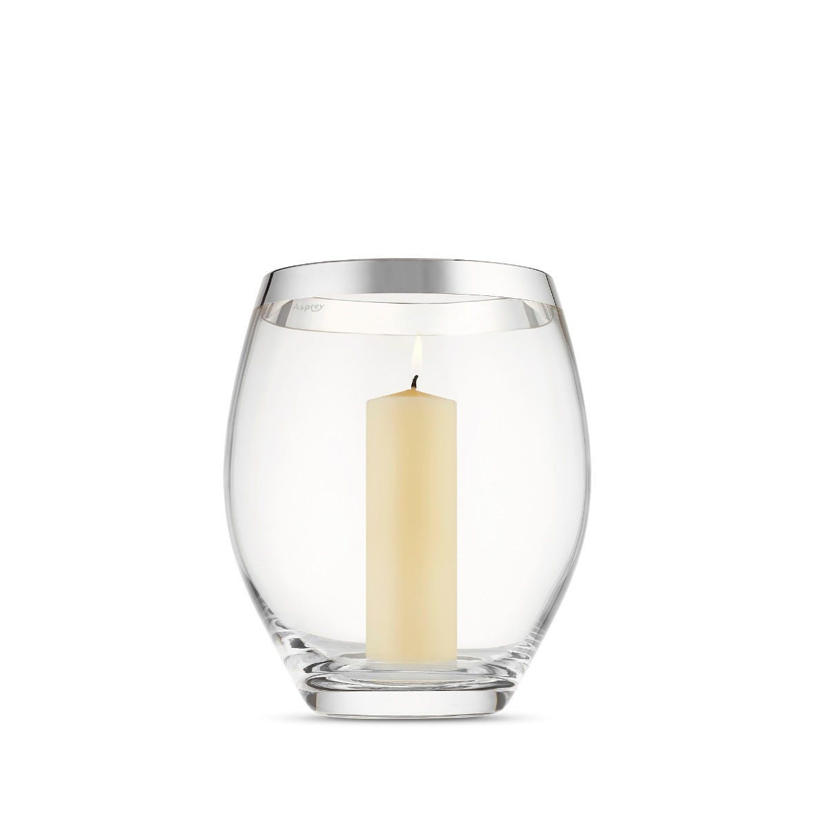 Notable for its contemporary silhouette, the Fitzroy Hurricane Lamp may also be used as a vase. It features an electroplated pure silver rim on lead free glass. We recommend using the 6" x 2" Charles Ferris candle CC10A.