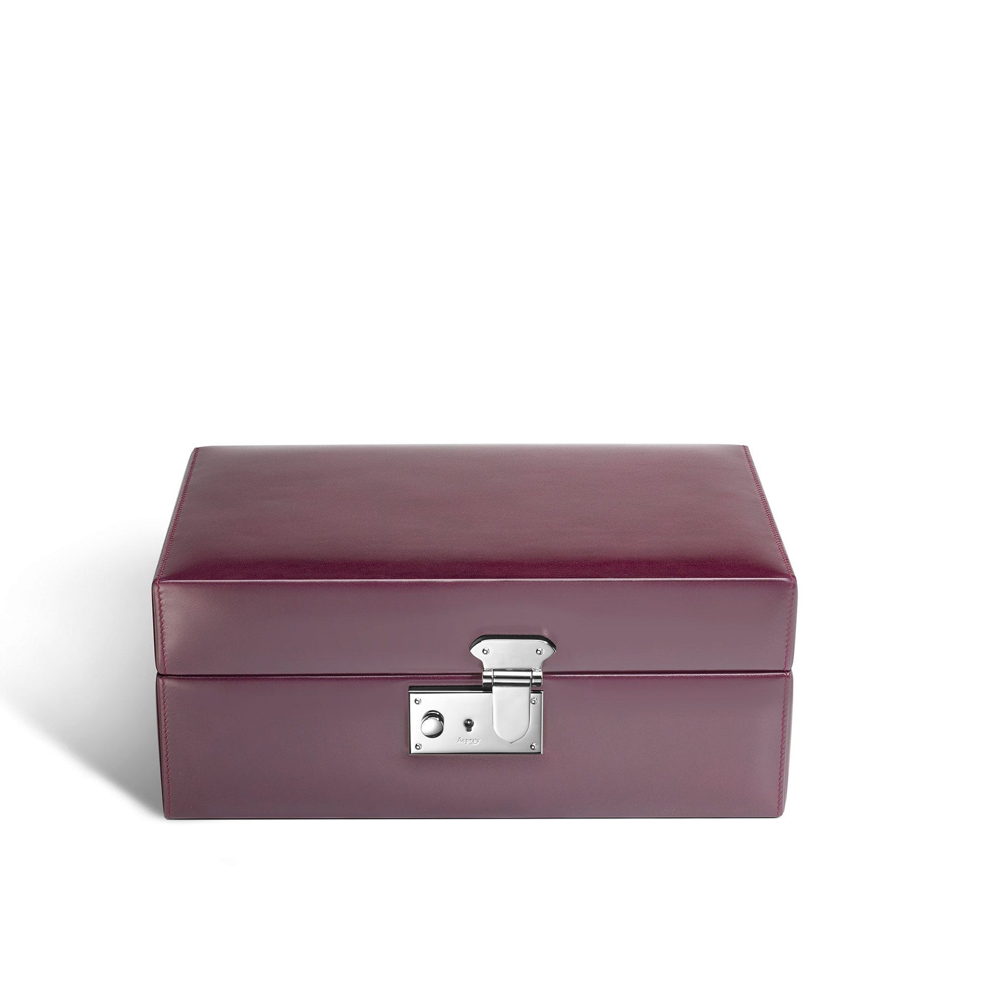 The exclusive Asprey palladium lock closure ensures that your valuables are securely kept, while the emblematic Asprey logo graces the central interior of the lid, a symbol of its storied legacy.