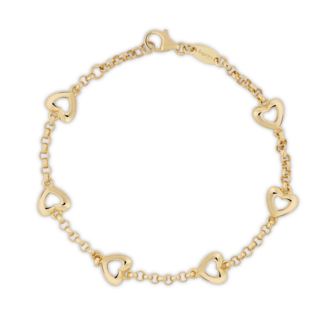 Celebrate love, elegance and enduring craftsmanship with the Hearts Bracelet in Sterling Silver Gilt from Asprey. This refined bracelet features a series of heart-shaped links, each meticulously fashioned in hallmarked sterling silver and treated with a subtle gilt finish for warmth and shine. The design blends heritage silversmithing with modern sentiment — a piece meant for daily wear or special-occasion layering.