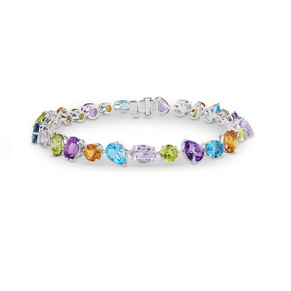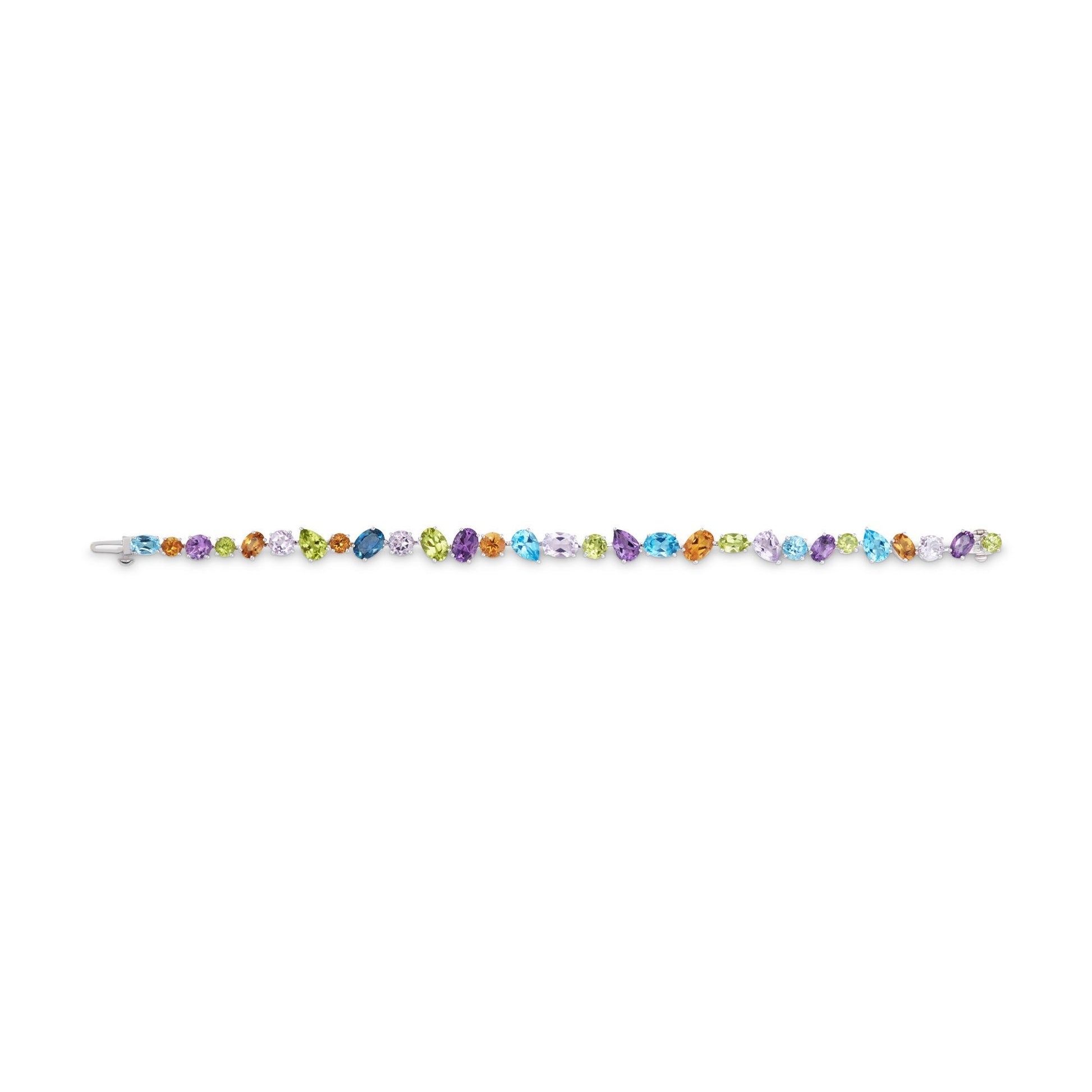 The Asprey Multi Chaos Mini Bracelet in 18 ct white gold is a vibrant celebration of colour and refined craftsmanship. A dynamic array of multicoloured gemstones is artfully set along the band, each stone carefully selected for its tone and brilliance. The clean, polished white-gold framework offers a luminous stage for the stones, allowing the composition to sparkle with distinct personality and movement. Whether worn alone as a statement piece or layered with other jewels, this bracelet embodies joyful elegance and contemporary luxury.