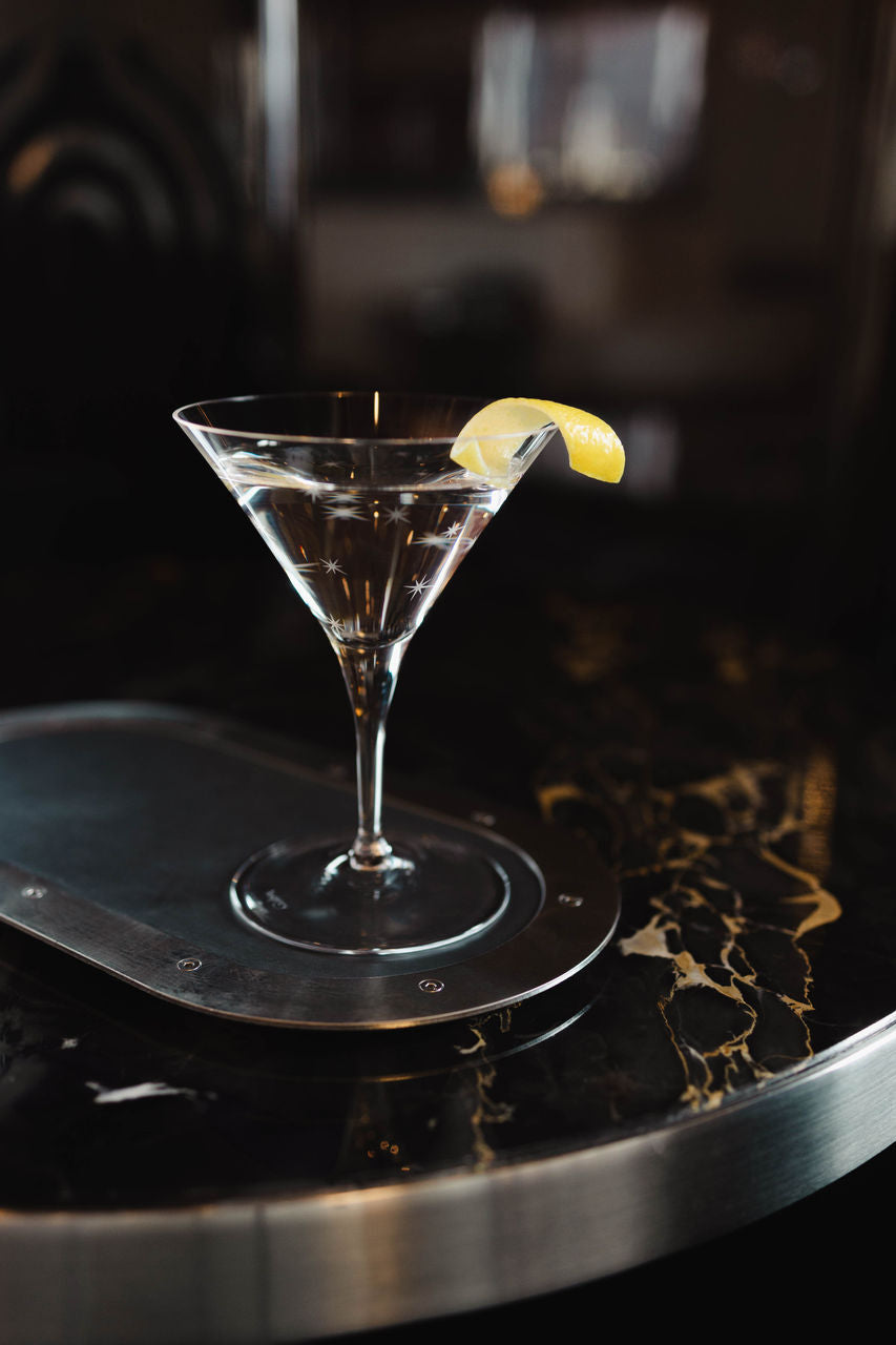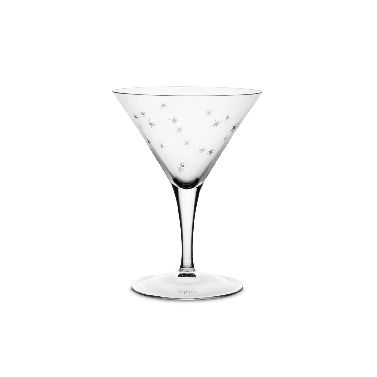 Clear martini glass in lead-free crystal with a miniature star pattern.