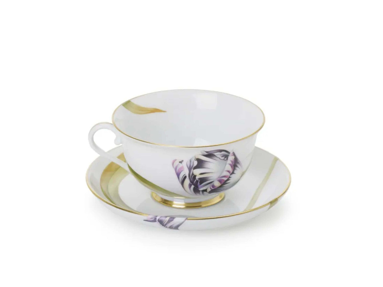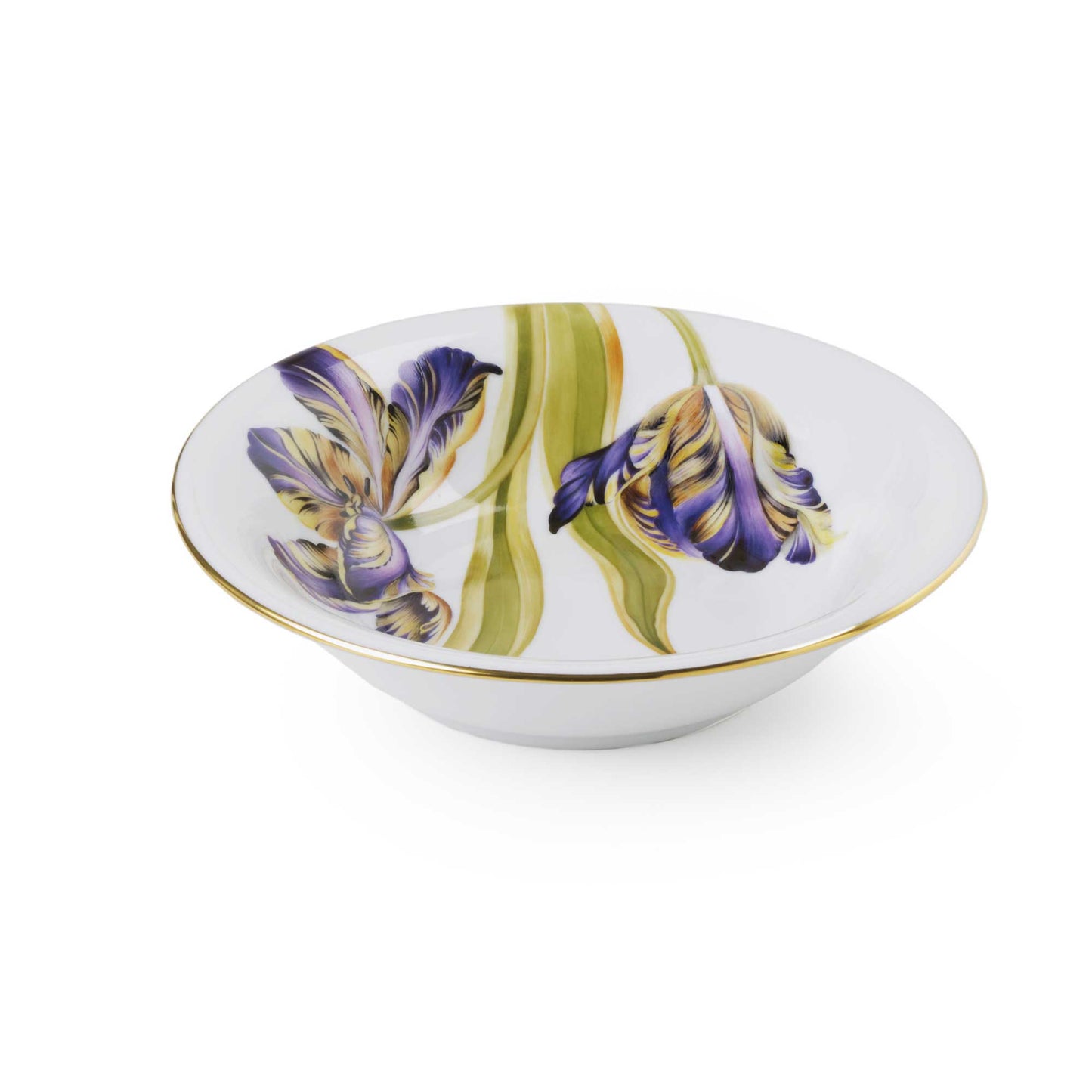 The Tulip Cereal Bowl from Asprey is fashioned in hand-painted porcelain by the renowned makers Herend, featuring the signature tulip motif designed by illustrator Donald Chaffin. Each piece is individually painted, signed by a master painter, and finished with a fine gold-trim edge. The bowl measures 16.5 cm (6.8″) in diameter and is intended for refined tableware use.